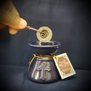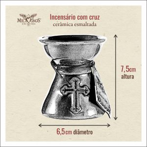 A elegância e a praticidade da cerâmica que brilha. Próprio para queimar o incenso de resina, o incensário compõe a linha de incensários clássicos, com cruz. Feito em cerâmica esmaltada. Medidas: 7,5cm altura x 6,5cm diâmetro. Disponível nas cores azul, branco, creme e marrom.