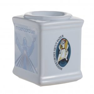 Seguindo a mesma linha do incenso Misericordiae (criado no Ano Jubilar da Misericórdia), essa peça é ideal para queimar o incenso de resina. Em cerâmica esmaltada, na cor branca, mede 9 x 9cm.