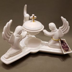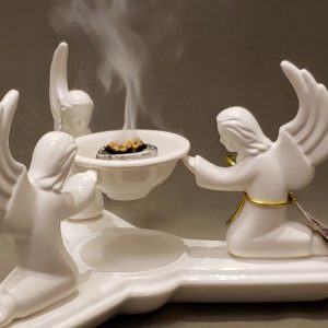 Incensário em cerâmica esmaltada 3 Anjos – além de uma linda peça de decoração, é próprio para queimar o incenso de resina.