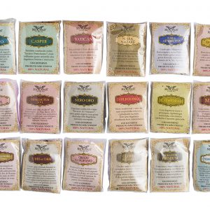 *Incensos: Olibanum Premium, Mirra, Arlequino, Nero Oro, Cathedral, Gloria Milagros, Vatican, Casper, Grego Rosa, Grego Garofano, Grego Alpino, N. Sra. de Fátima, N. Sra. de Nazaré, N. Sra. Aparecida, N. Sra. desatadora dos Nós, Benedictus XVI, Urbi et Orbi e Misericordiae.