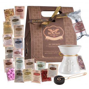 Uma excelente opção para conhecer os melhores incensos de resina do mundo. É composto por 18 tipos de incensos* em saquinhos de 5g cada, 1 incensário de cerâmica esmaltada, 5 carvões de acendimento rápido, 1 pinça para acendimento e livreto explicativo. Tudo isso em uma linda embalagem para presente!