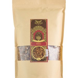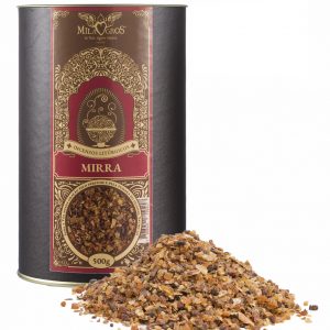 Um dos presentes oferecidos ao Menino jesus pelos Reis Magos, essa resina de coloração marrom-avermelhada é obtida da seiva de uma árvore original da Somália – Commiphora myrrha. A palavra origina-se do hebraico maror ou murr, que significa “amargo”.