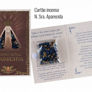 Criado pela MILAGROS, estes lindos grãos azuis com gotas douradas representam o manto de N. Sra. Aparecida. Foi usado pela primeira vez em maio de 2007 pelo Papa Bento XVI, na Missa de Canonização de Frei Galvão. Desde então, passou a ser utilizado pelo Sumo Pontífice nas missas da Basílica de São Pedro, no Vaticano. Tem fragrância suave e penetrante e produz bastante fumaça.