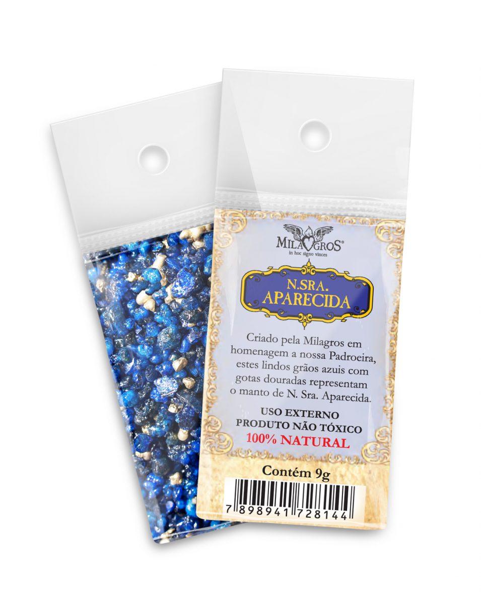Criado pela MILAGROS, estes lindos grãos azuis com gotas douradas representam o manto de N. Sra. Aparecida. Foi usado pela primeira vez em maio de 2007 pelo Papa Bento XVI, na Missa de Canonização de Frei Galvão. Desde então, passou a ser utilizado pelo Sumo Pontífice nas missas da Basílica de São Pedro, no Vaticano. Tem fragrância suave e penetrante e produz bastante fumaça.