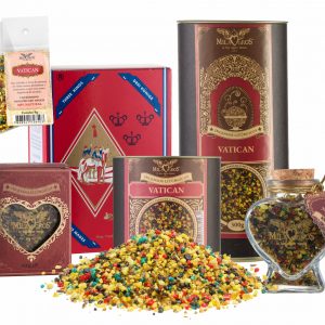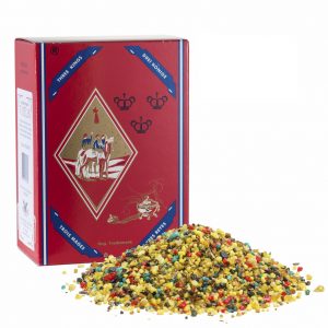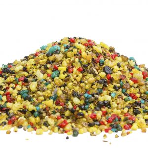 Seus grãos coloridos são fruto da mistura de várias resinas e óleos aromáticos.